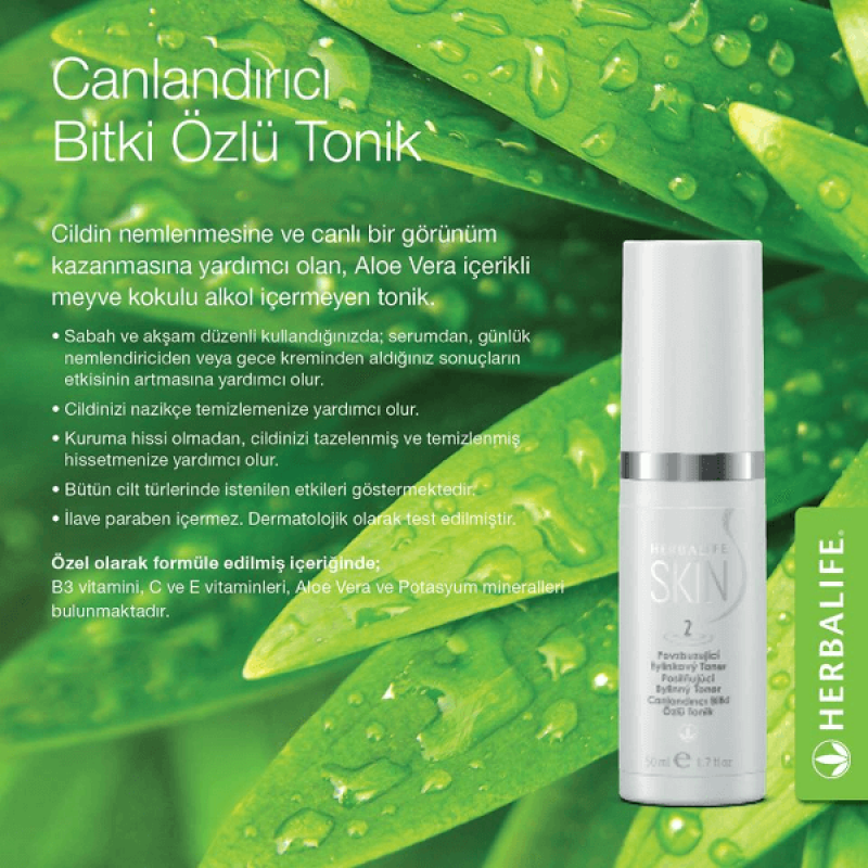 B3 vitamini, C ve E vitaminleri, Aloe Vera ve Potasyum mineralleri bulunmaktadır.