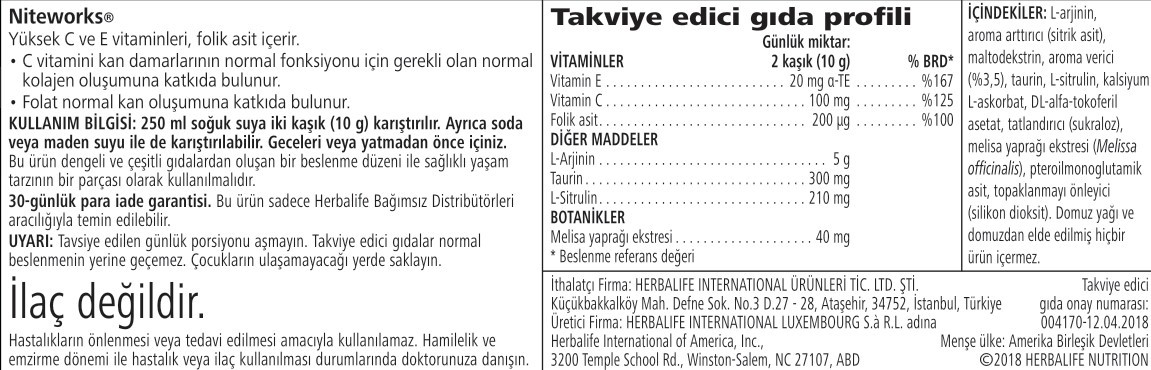- L-Arjinin, L-Sitrulin ve vitaminler içerir.