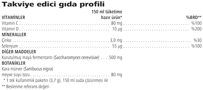- Bağışıklık sisteminin normal fonksiyonuna katkıda bulunan C ve D vitaminleri, Selenyum ve Çinko bakımından yüksektir.